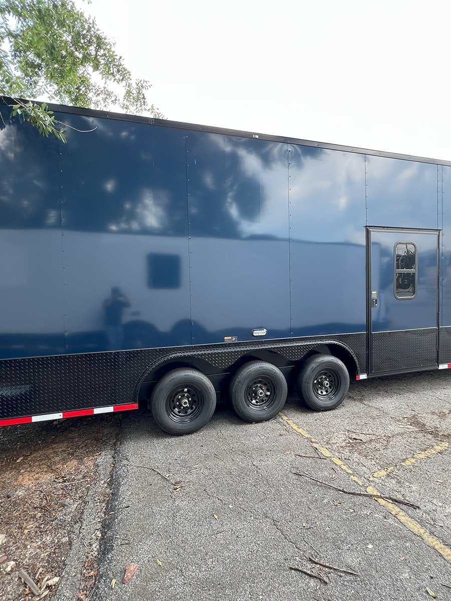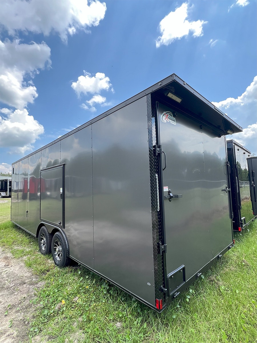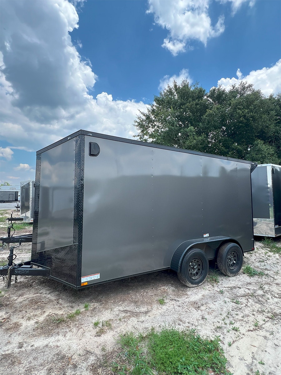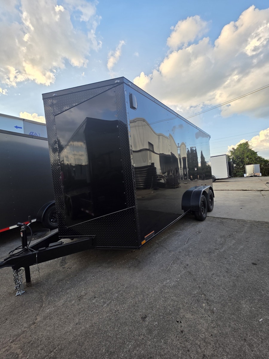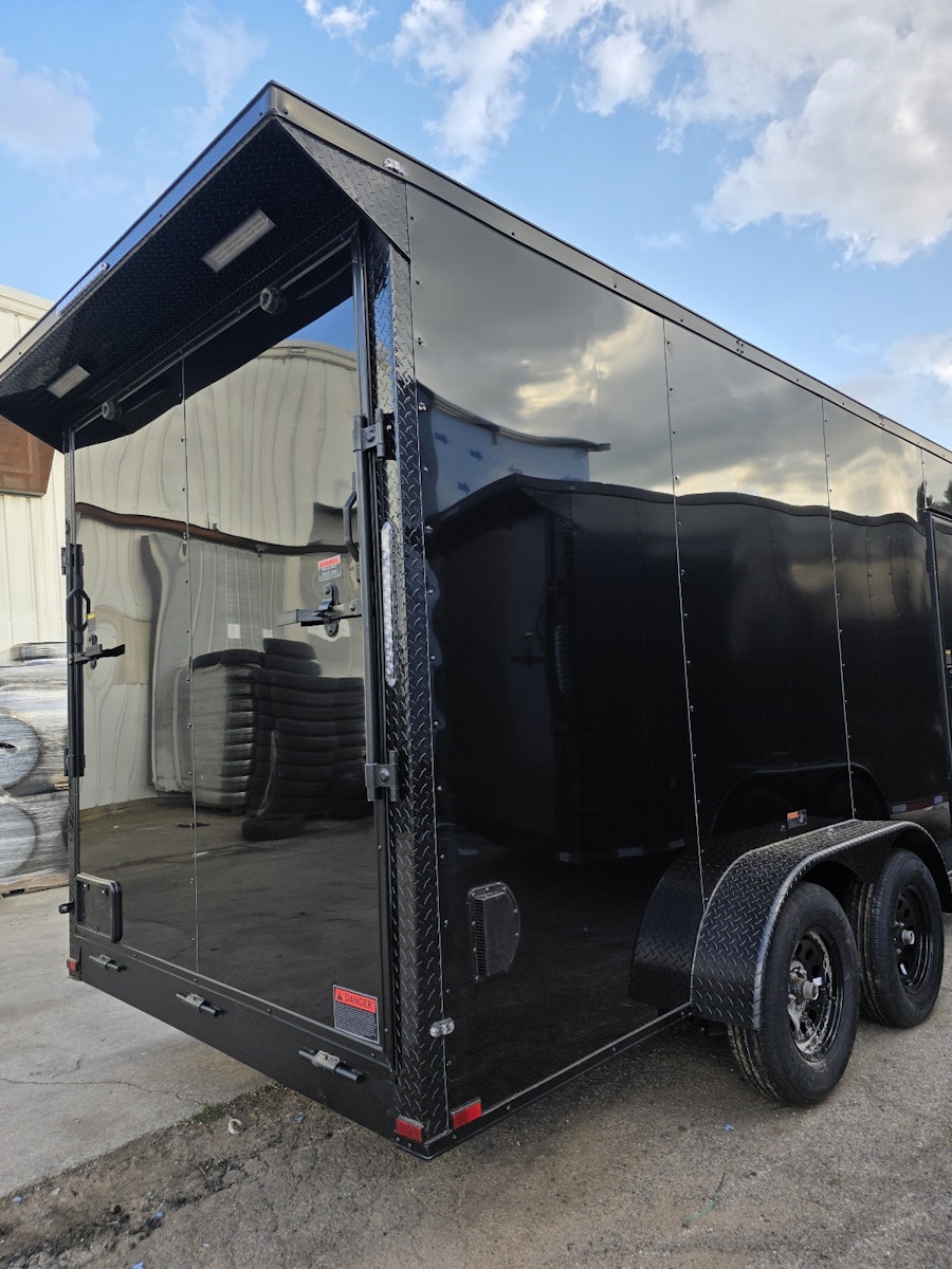 Hook & Line 7x16TA Black Blackout Enclosed Cargo Trailer. You can never go wrong with a solid black on black look. Built with 7' interior height for extra space and dual 3,500 lb axles for reliability while still driving off in style.