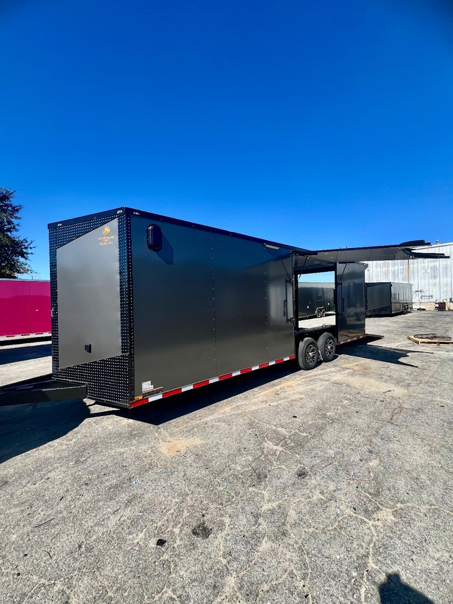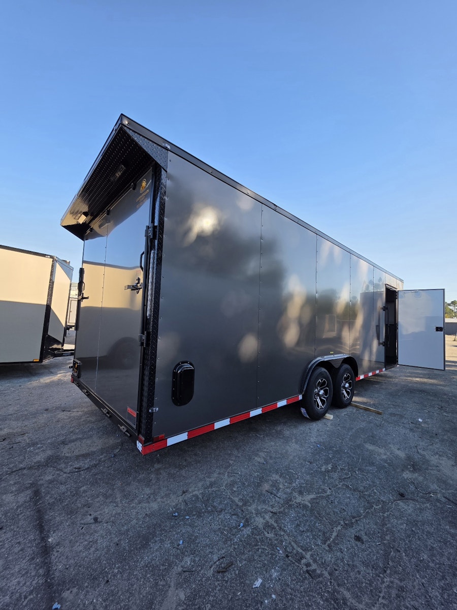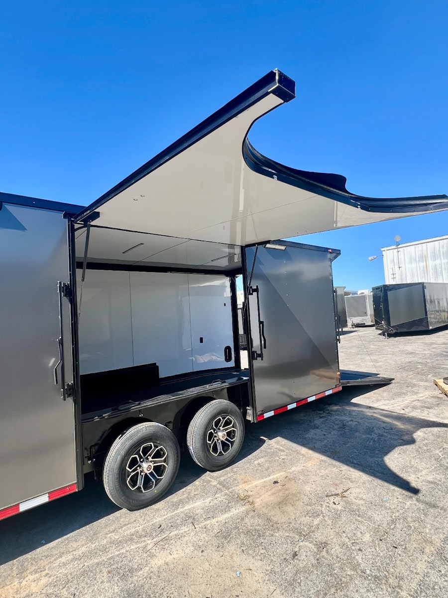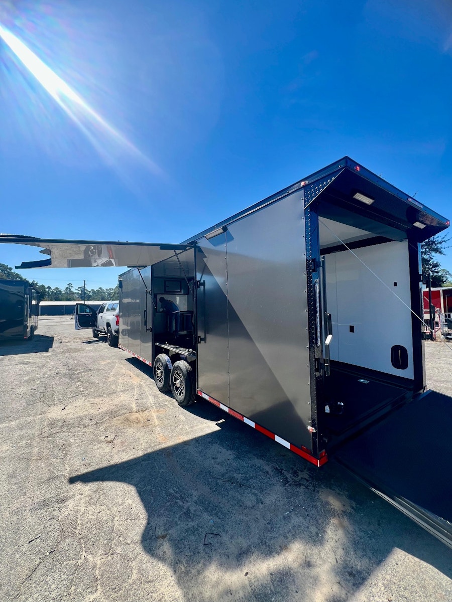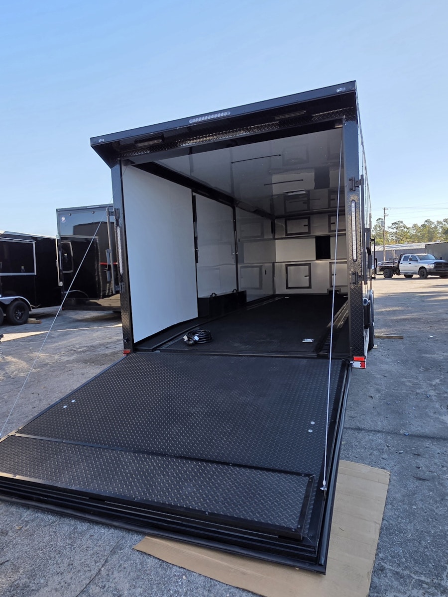 8.5x24 TA Race Trailer Manufactured by Hook & Line Cargo, where performance meets precision. Equipped with a Gull-wing door with removable fender and mag wheels. The trailer delivers both strength and style. The finished interior adds a professional touch, making it the perfect choice for racers who value quality and craftsmanship. MADE TO ORDER ONLY!!!